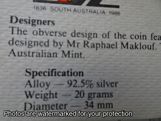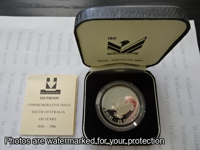 1986 $10 Proof Coin South Australia 1836 - 1986