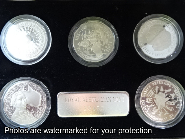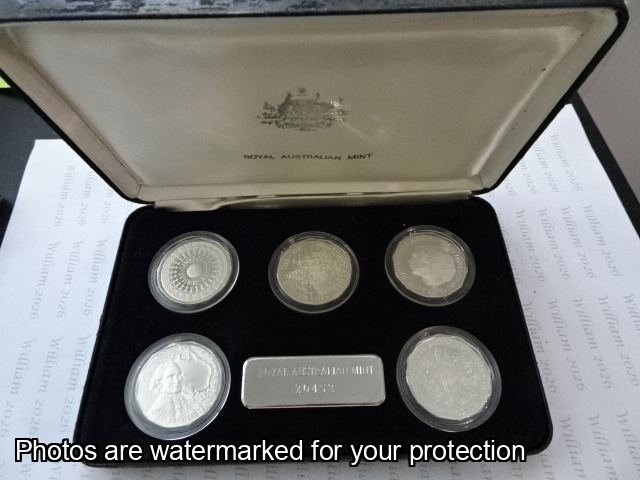 5 x 50c Sterling Silver an 1 x medallion Sterling Silver