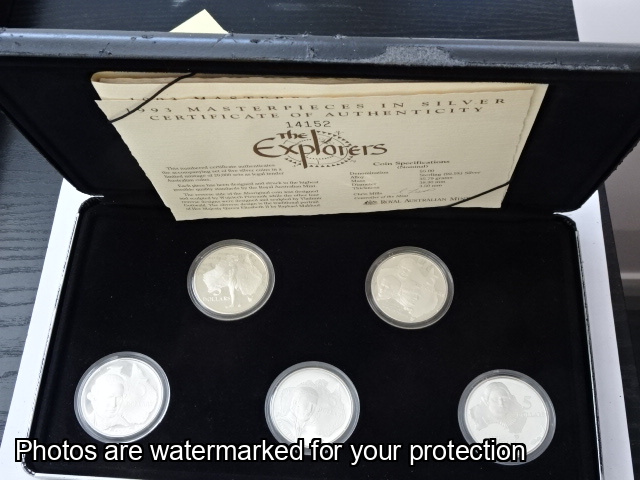1993 5 x $5 coins Masterpieces in Silver