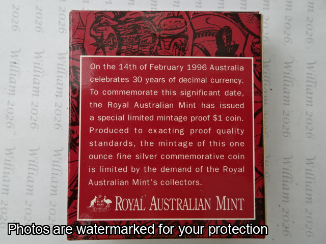 1996 $1 Fine Silver 30th Anniv of Decimal Currency