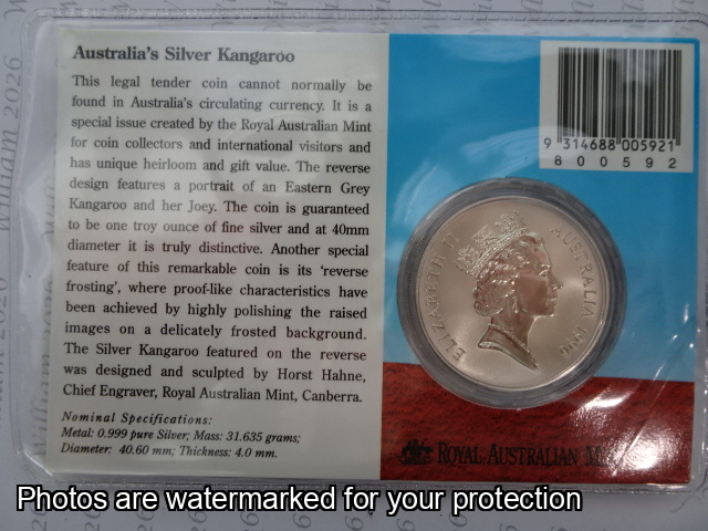 1996 Silver Kangaroo 1 ounce $1 coin