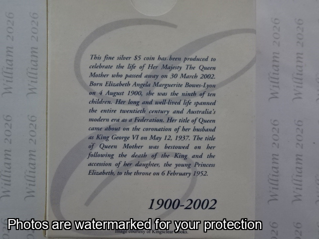 2002 $5 Silver proof coin - Queen Elizabeth The Queen Mother