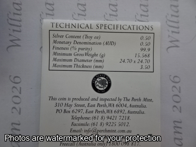 2003 50c Fine Silver 1/2 ounce The Australian Kookaburra Square Proof Coin