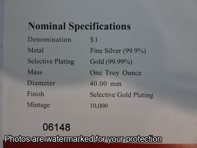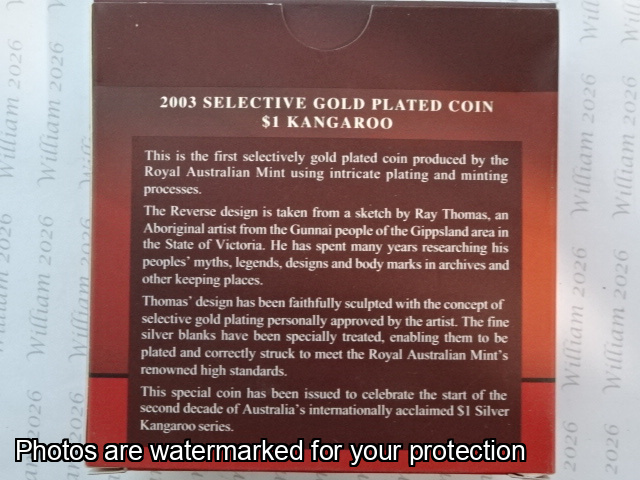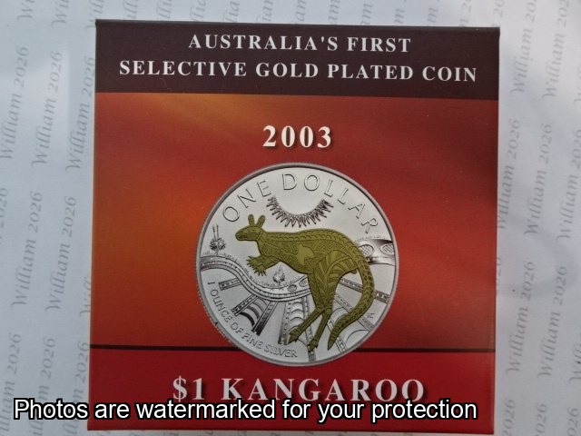 2003 Silver Kangaroo - 1 Ounce $1 Fine Silver Selectively Gold Plated Coin