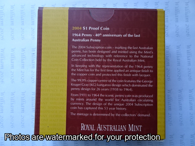 2004 $1 40th Anniv. Of Last Aust Penny