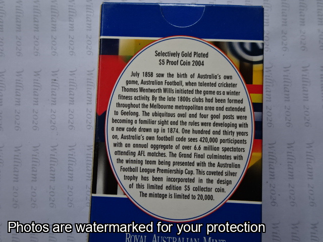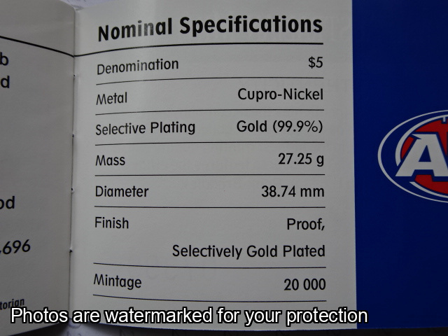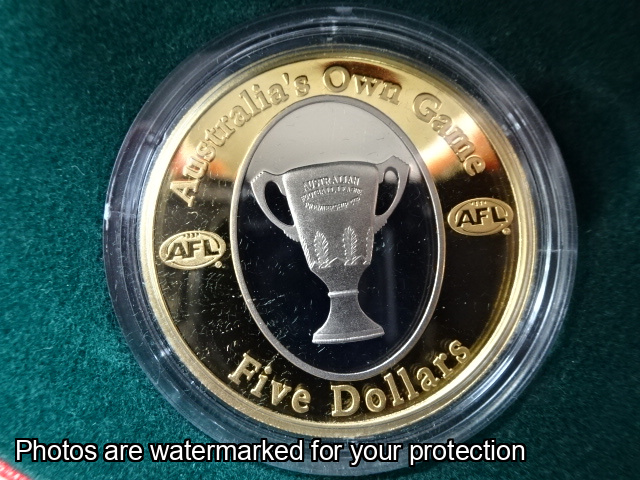Reverse: AFL Premiership Cup in Gold Plated Surround with wording "Australia's Own Game"