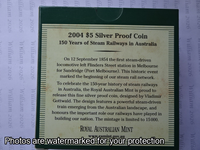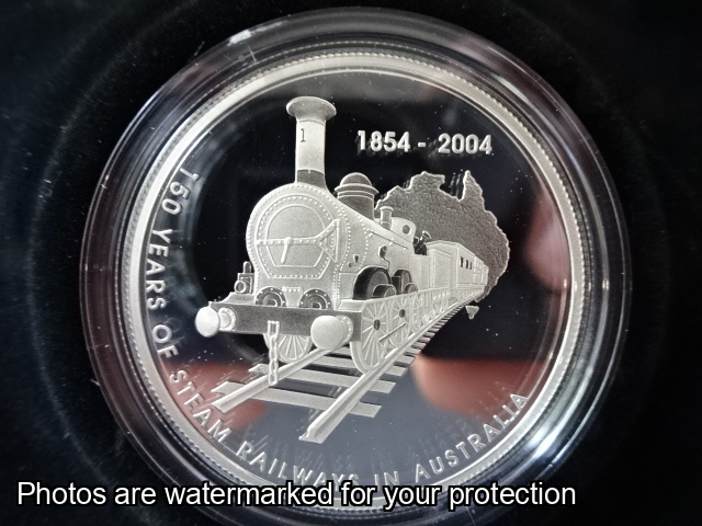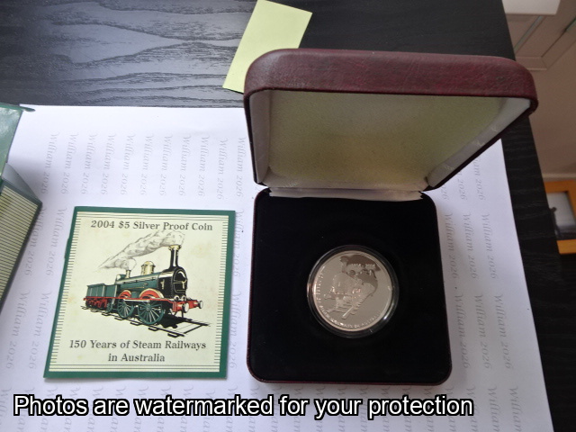 2004 $5 Silver Proof 150 Years of Steam Railways in Aust