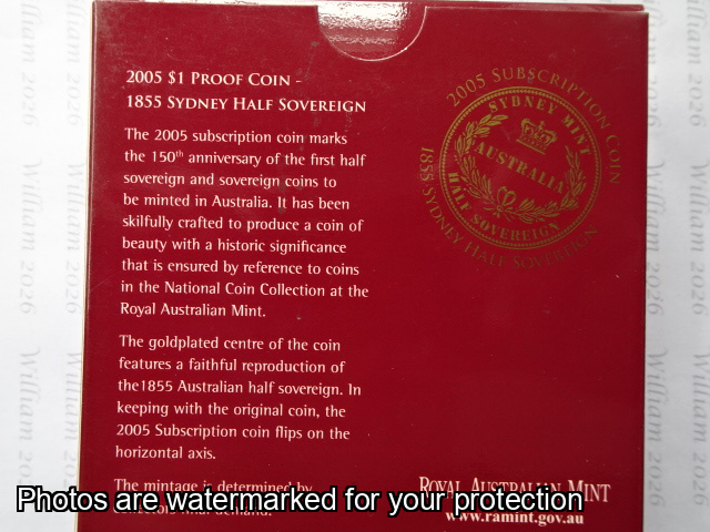 15th Anniversary  1855 Syd 1/2 Sovereign