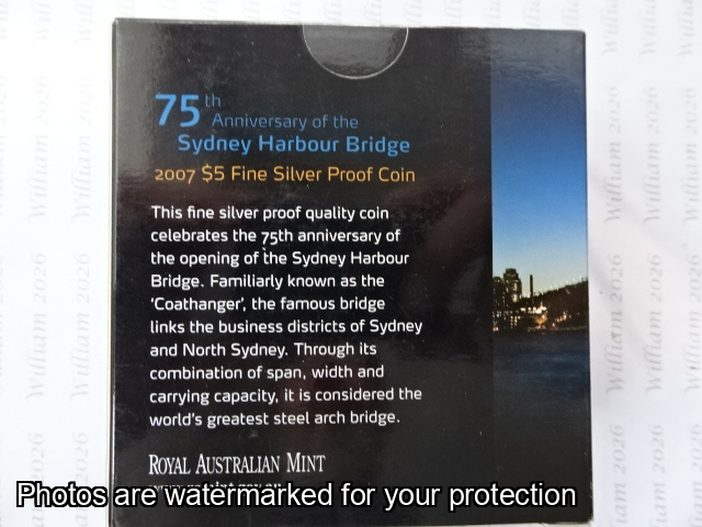 2005 $5 Fine Silver Proof Coin Sydney Harbour Bridge