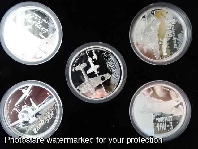 2008 5 x $1 Fine Silver Fighter Plane of WWII