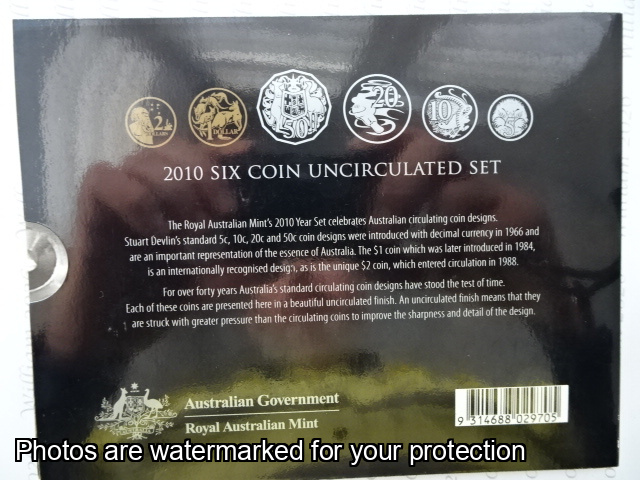 6 Uncirculated Coin Set 5c, 10, 20, 50c, $1 & $2