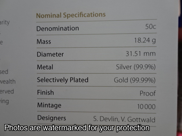 2011 2 x 50c Selectively gold plated proof coins
