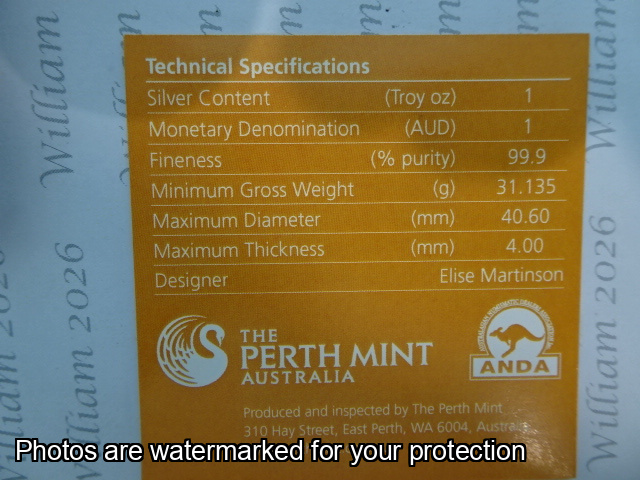 2003 Silver Kangaroo $1 Proof CoinEleventh Release1 Ounce Fine Silver
