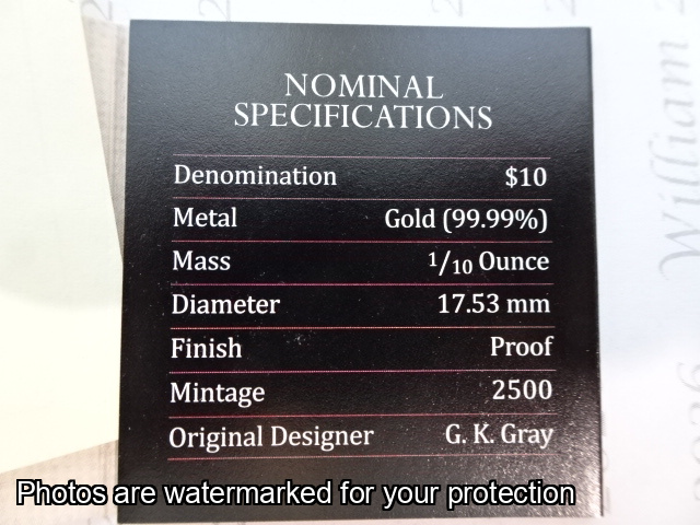 $10 1/10 ounce 99.9% gold