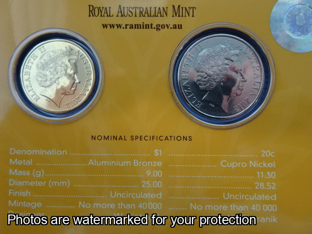 2012 2 coin set Australian Wheat Fields of Gold $1 and 20c