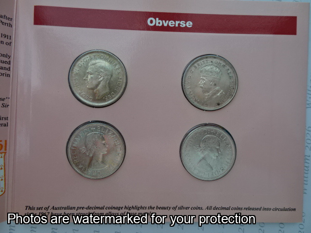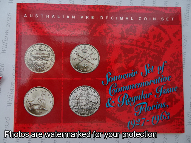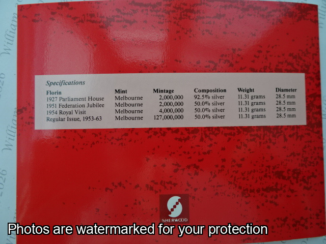 1927 Parl House Florin 1951 50th Anniv Fed Florin 1954 Royal Visit Florin 1963 Reg Issue Florin