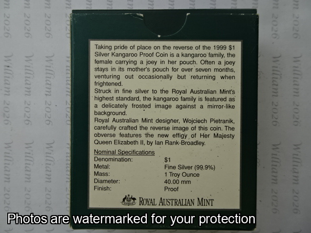 *** SOLD *** 1999 $1 Silver Kangaroo